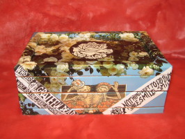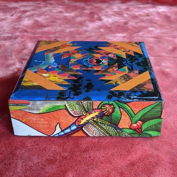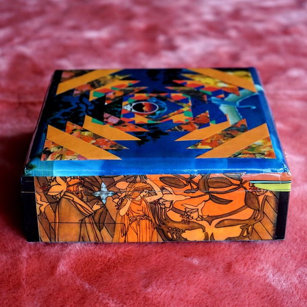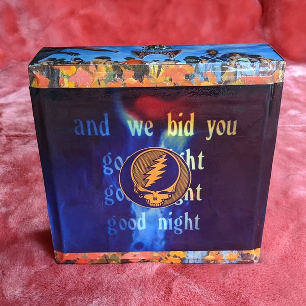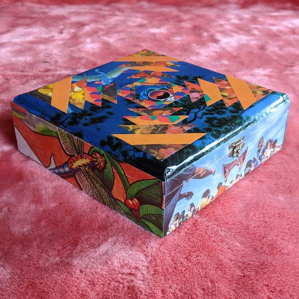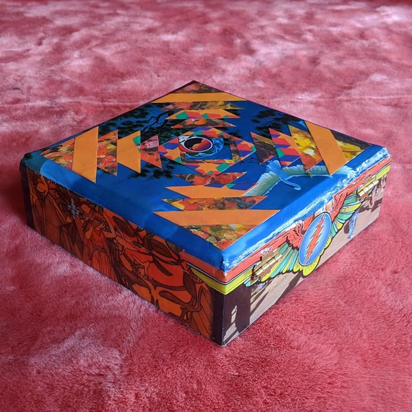 Grateful Boxes are triple-thick glazed with a non-toxic, water-resistant acrylic gloss that makes the decoupaged edges and corners seamless. Each unique collage is affixed to a sturdy wooden box that has been upcycled.