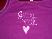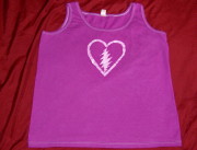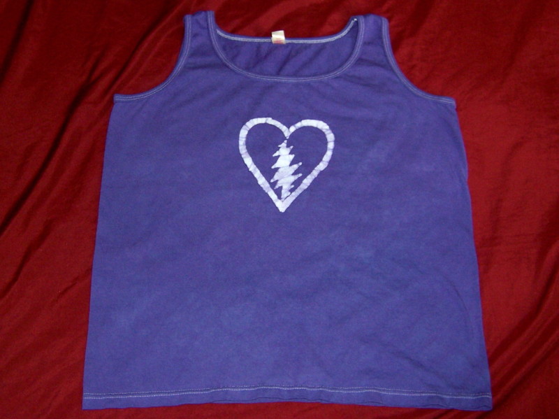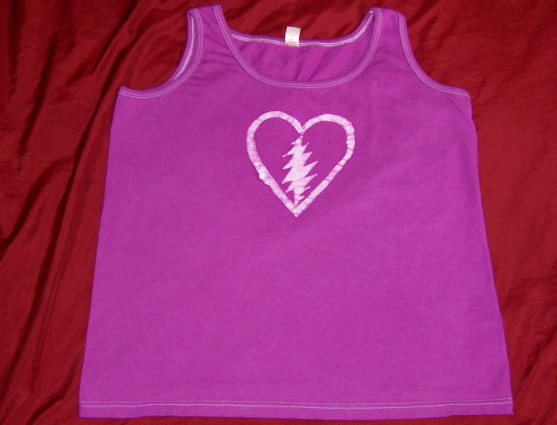 Batik Women's Tank Top. Front: Heart split by a 13-point lightning bolt. Back: "Steal Your [heart symbol]". Grape or Magenta. S, M, L or XL. [pictured: Large]