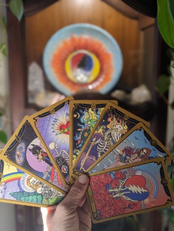 Offering Grateful Dead Tarot readings to illuminate your path with insight and inspiration. Alternative tarot decks are also available. Schedule a video (Zoom) or phone appointment for a 30-minute ($40) or 45-minute ($50) session with Caroline of Grateful Box Studios.